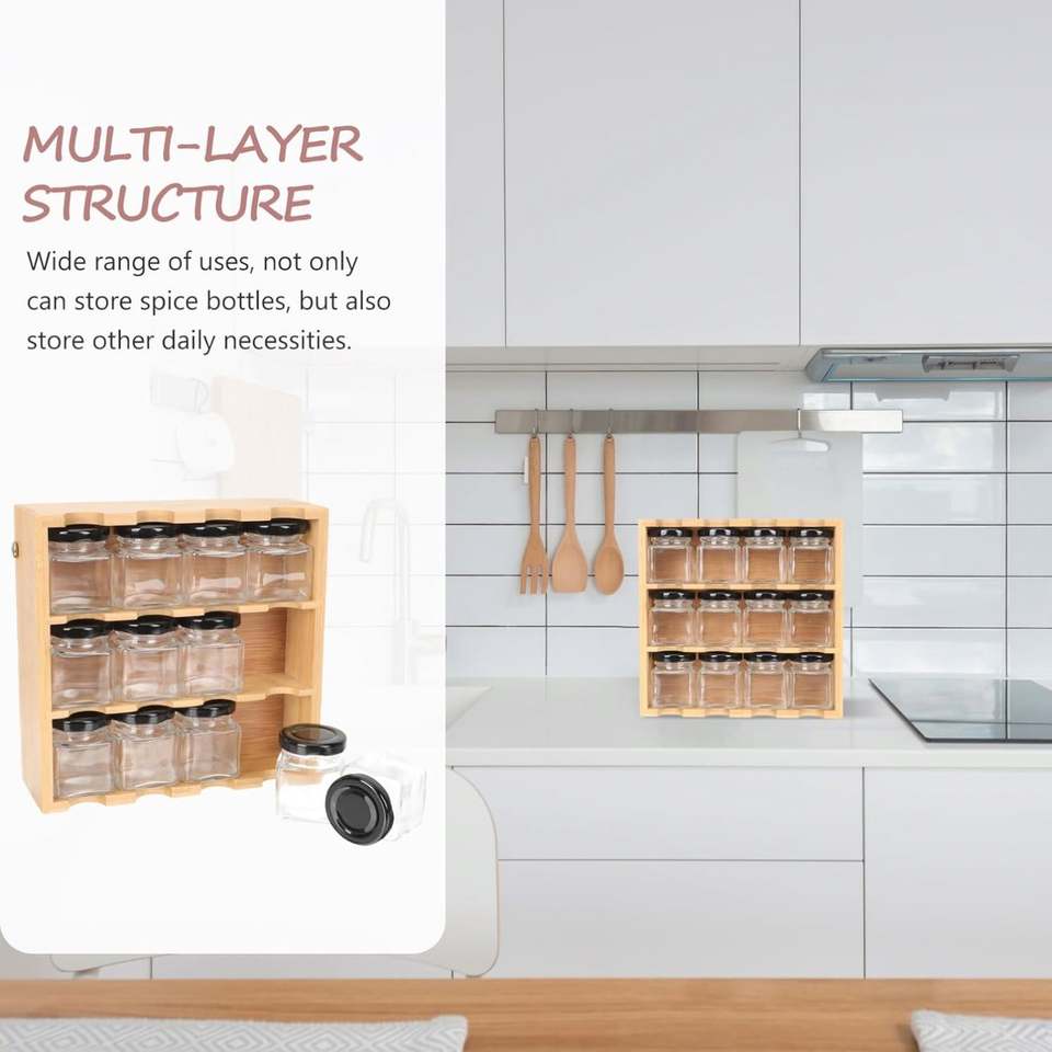 Étagère à épices en bambou 2025, 3 niveaux, organiseur de rangement sur pied pour cuisine avec 12 pots à épices