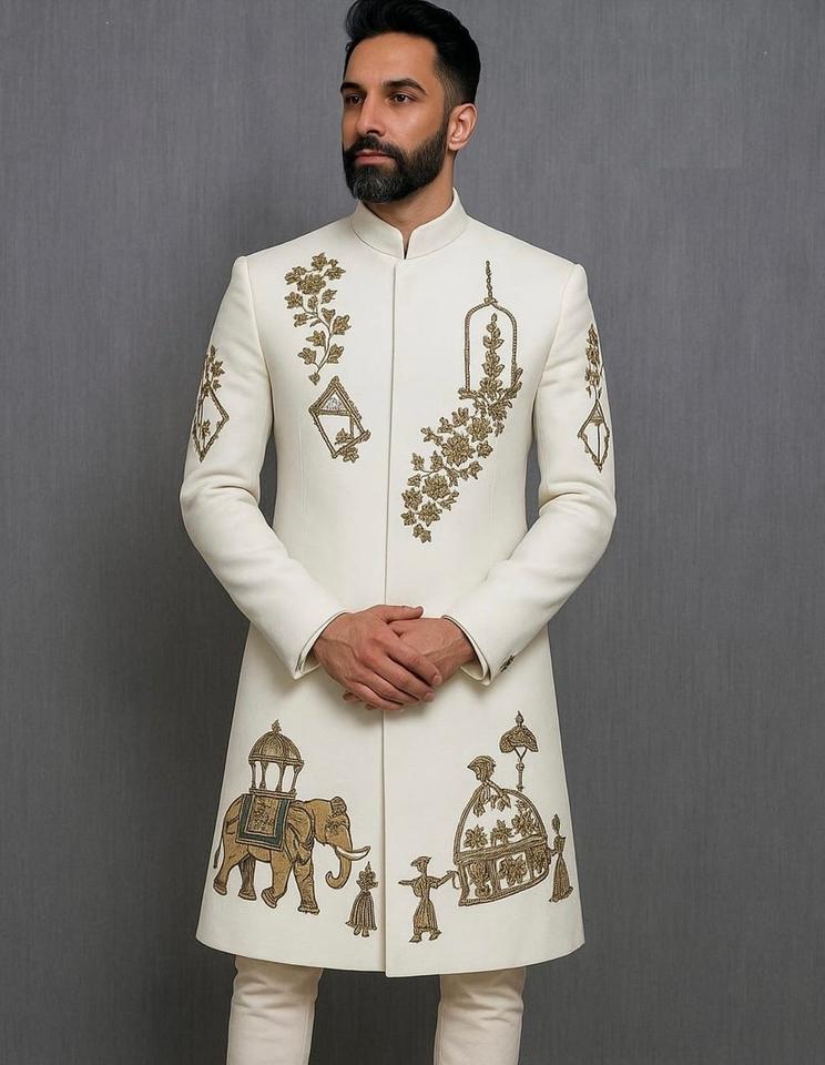 2025 personnalisé hommes Sherwani pantalon robe belle broderie avec cristal verre perle Dabka et pierre travail blanc grande taille