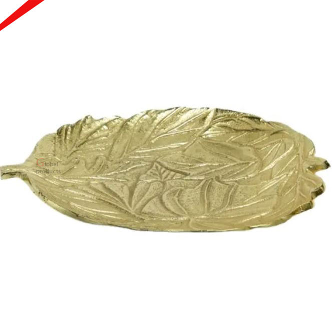 Dernier plateau de service design feuille d'aluminium en métal fini doré pour restaurant et bar d'hôtel