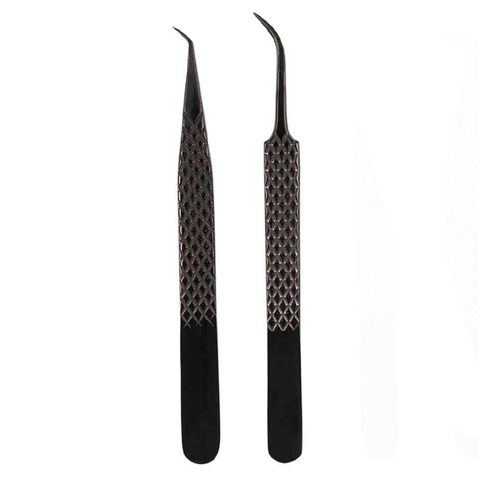 2025 Best Design Set Of 4 Diamond Grip Eyelash Extensions Tweezers - Japanese Steel Lash Supply (Black) Tweezers