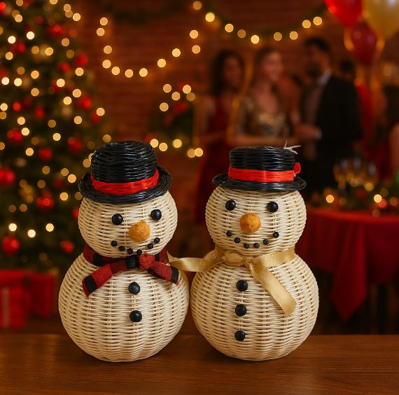 2025 Meilleure vente Bonhomme de neige en rotin unique pour la conception de décoration de Noël fait à la main en gros personnaliser fabriqué au Vietnam - SISU