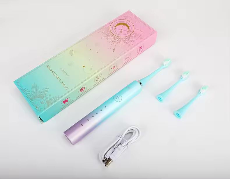 Brosse à dents électrique sonique étanche IPX7 la plus vendue en 2025 avec cinq modes de nettoyage efficaces, 5 brosses à dents dégradées vert bleu
