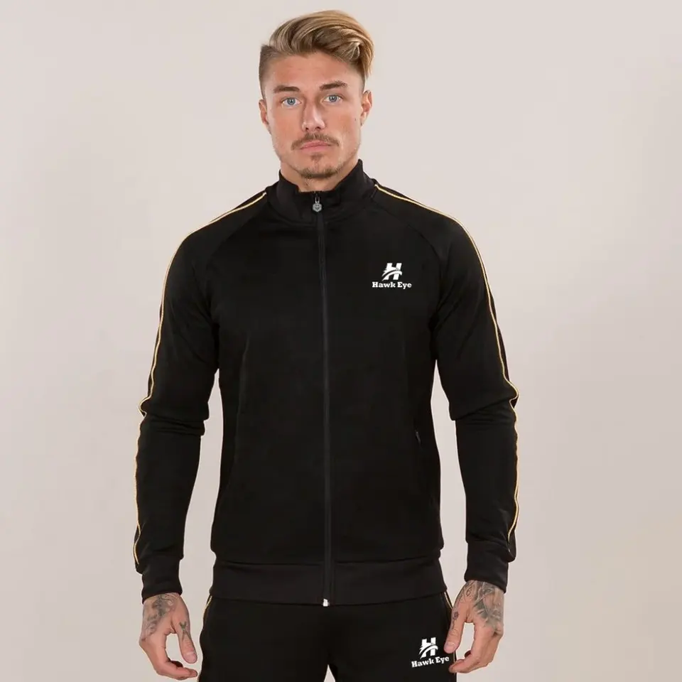 Veste zippée intégrale pour homme en tissu polyester noir 2025 avec pantalon assorti noir pour homme
