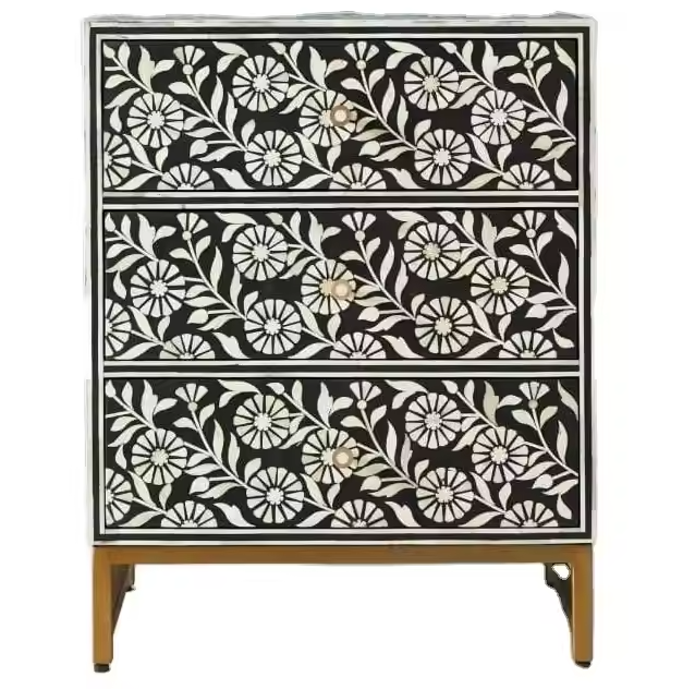 2025 noir Design moderne haute qualité os incrustation tabouret/pouf pour bureau à domicile salon chambre-armoire de rangement en gros