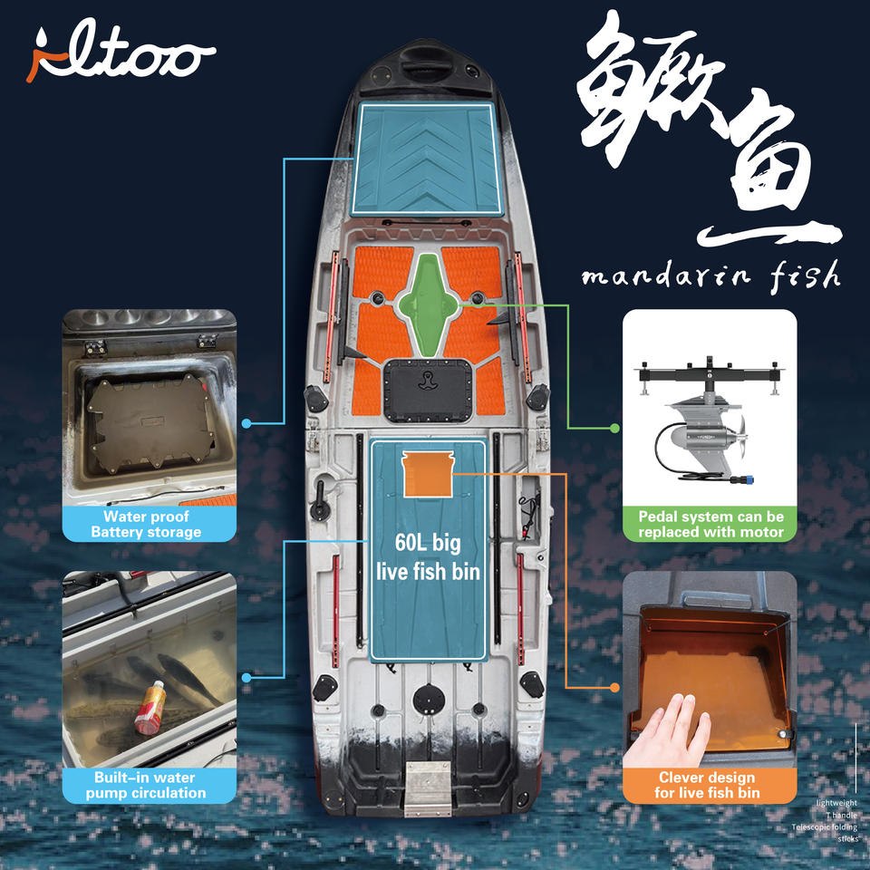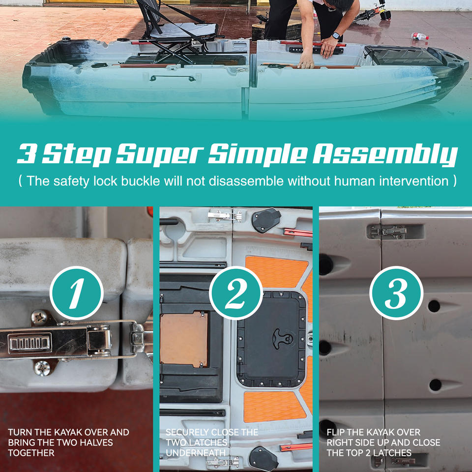 2025 tout nouveau Kayak à pédale modulaire pour une personne pêcheur à la ligne 9.8ft longueur 37 pouces largeur 2 sections Kayak rotomoulé amovible