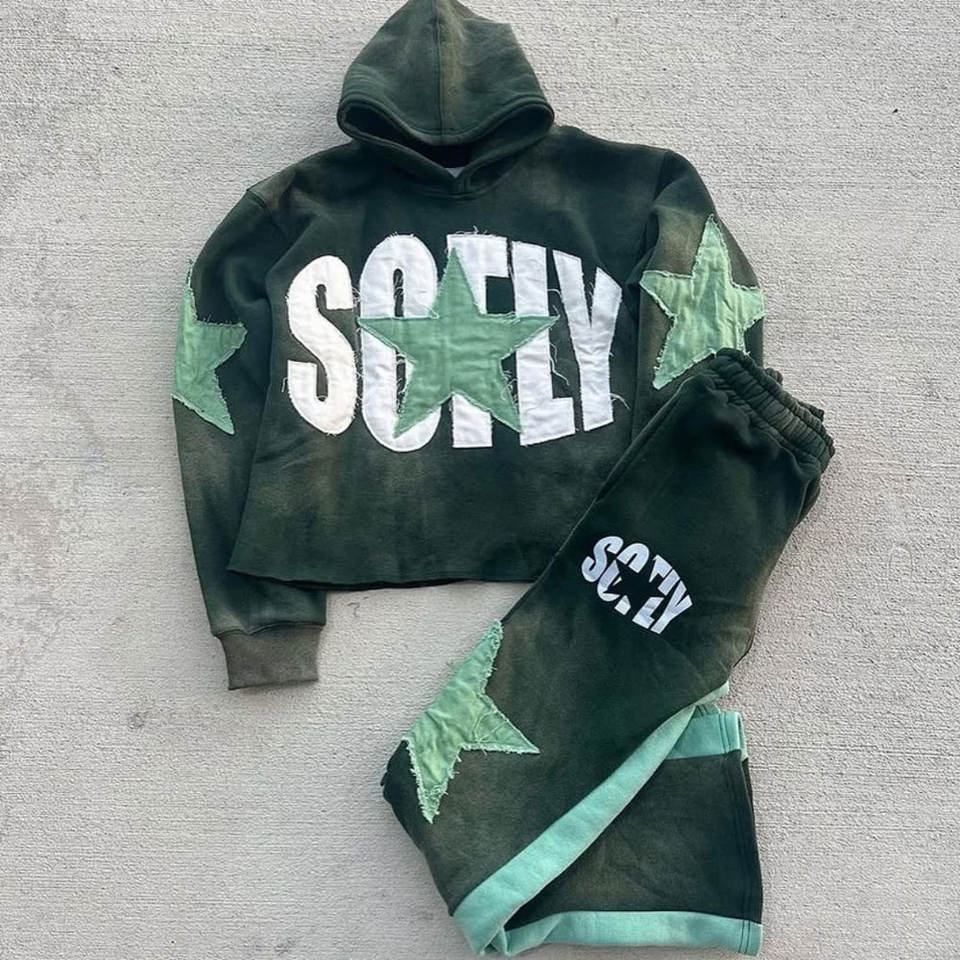 2025 matériel de marque Durable fait à manches longues hommes lavage à l'acide survêtement nouveau imprimé Article en détresse hommes survêtement
