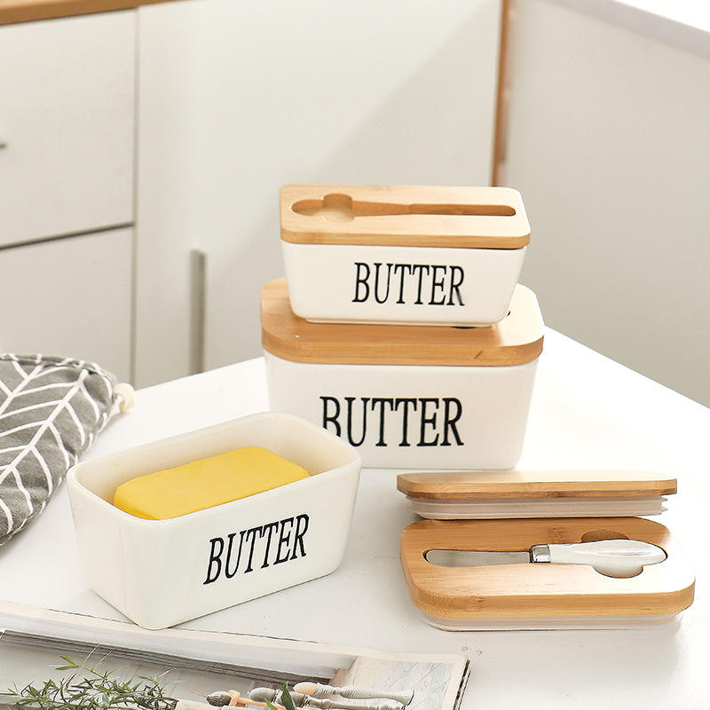 2025 boîte à beurre en céramique conteneur de stockage de beurre plat à beurre avec couteau et joint conteneur à couvercle en bambou