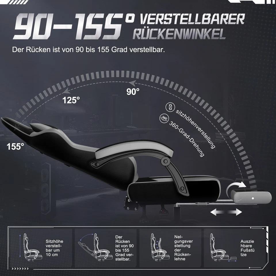 Mécanisme:Chaise gaming multifonctionnelle avec mécanisme et plateau inclinable verrouillable.