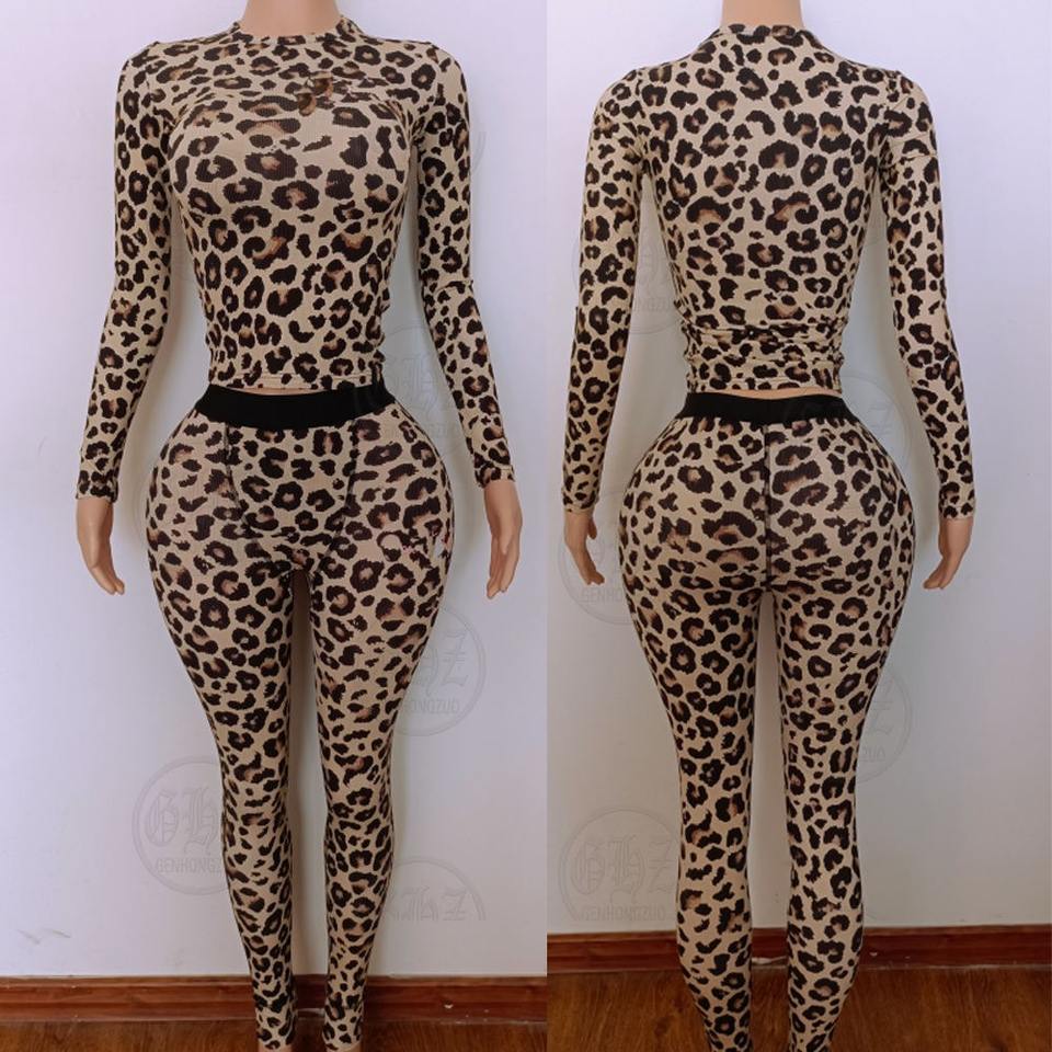 2025 guépard léopard deux pièces femmes ensembles replier Flare ensemble LOGO personnalisé petit haut Leggings femmes vêtements salon ensembles