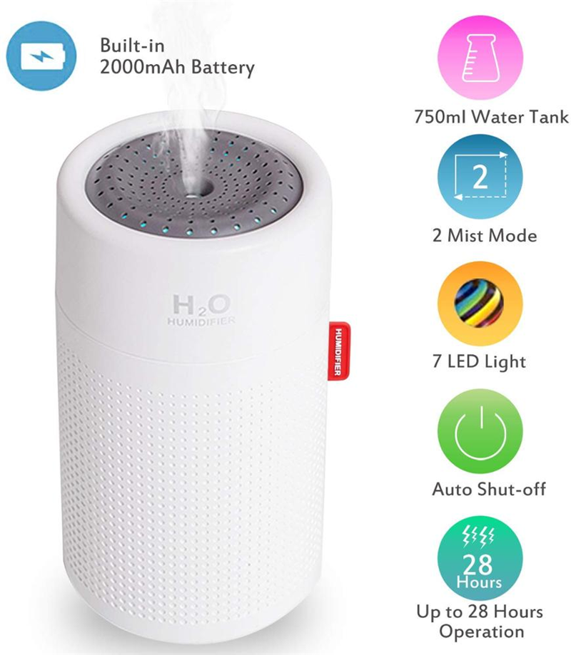 2025 Chine Offre Spéciale grande capacité 750ML ultrasons 2000mAh batterie Portable humidificateur d'air diffuseur