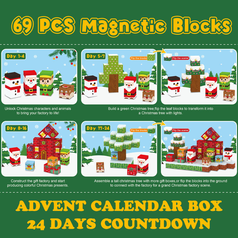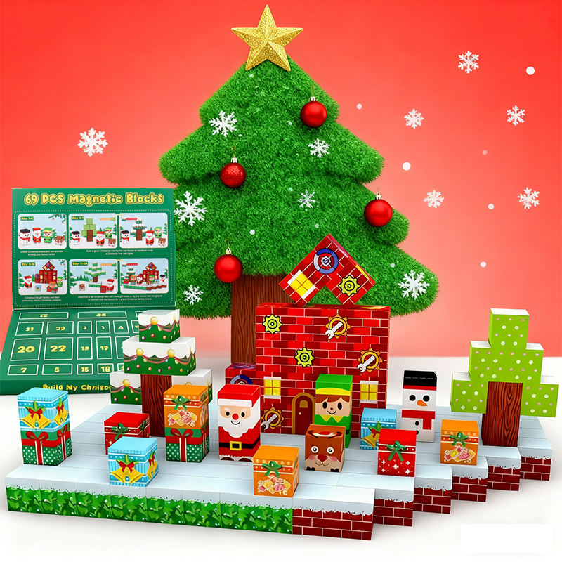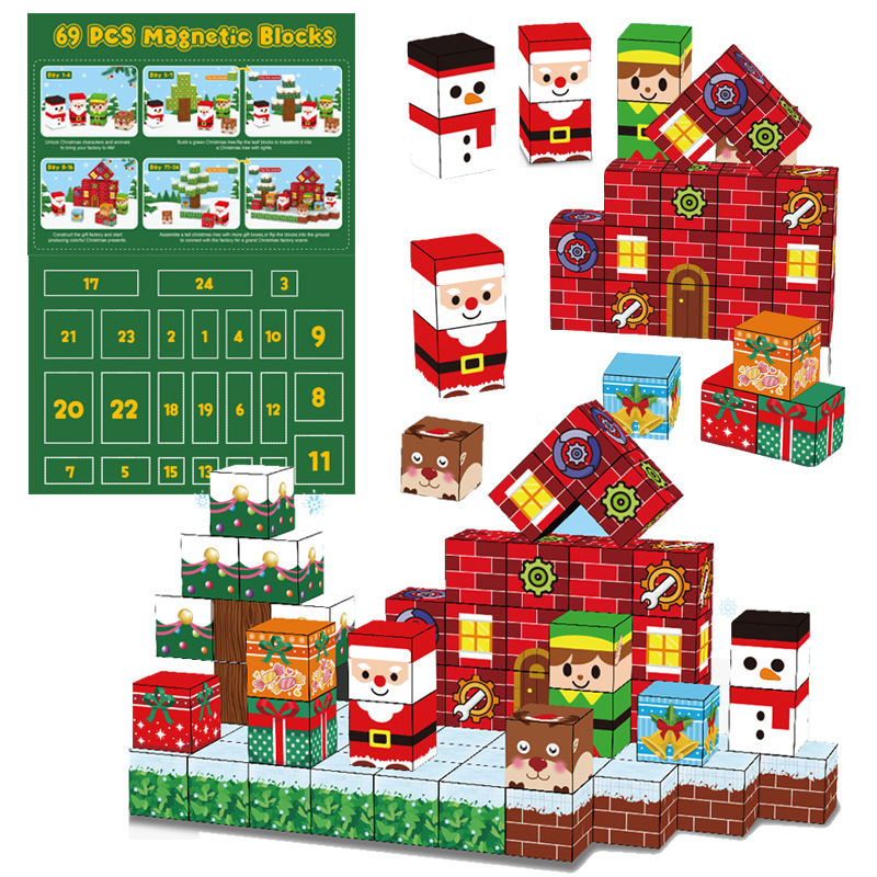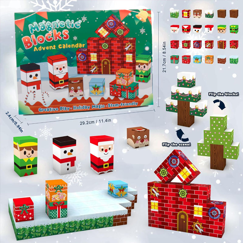 Coffret Calendrier de l'Avent de Noël 2025 avec 24 Jours pour Enfants, Cadeau Compte à Rebours, Cube Magnétique, Blocs de Construction Magnétiques, Jouet STEM