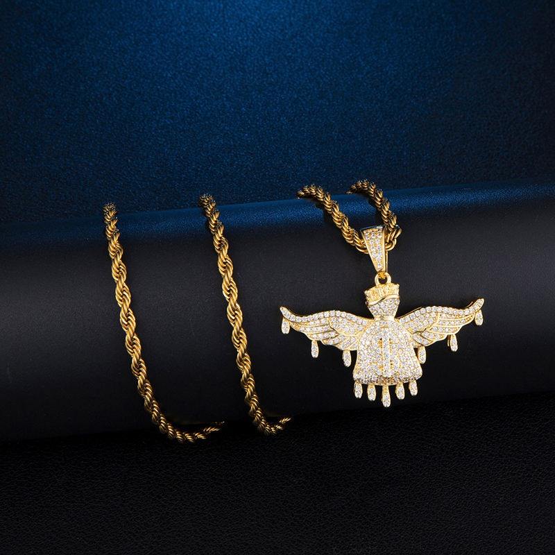 Coffret Cadeau Noël 2025 – Grand Collier Pendentif Ange en Zircon Glacé pour Homme, Pendentif Dollar en Laiton Tendance