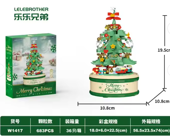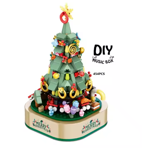 2025 noël rotatif boîte à musique blocs de construction nouvel an bricolage assemblage jouet pour garçons filles étudiant activité cadeau Sets7