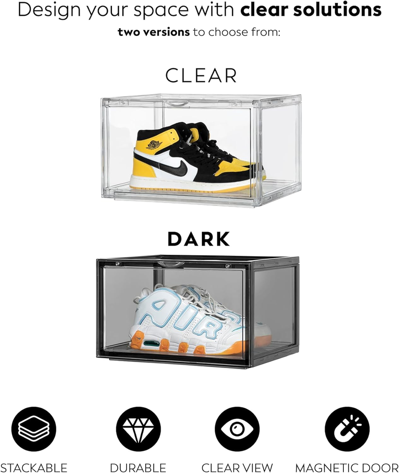 2025 clair acrylique Transparent boîte à chaussures empilable stockage bacs en plastique étui à chaussures goutte avant fumée noir coups de pied caisse à chaussures Durable