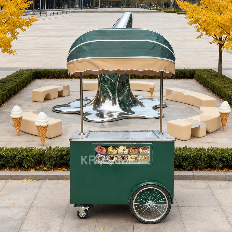 Chariot de vente ambulante commercial 2025 à 8 bacs, congélateur de présentation de gelato à 8 plateaux, chariot à glaces à pousser à la main