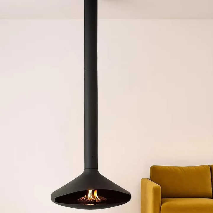 Cheminée suspendue moderne à prix compétitif 2025, bioéthanol et bois, montage au plafond, cheminée suspendue