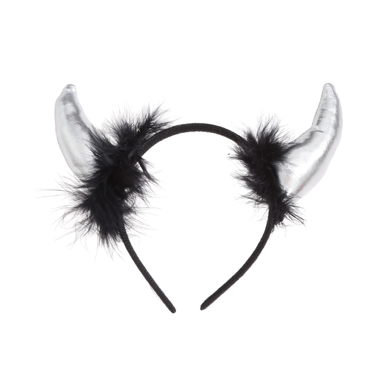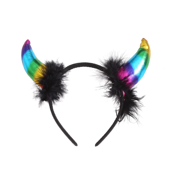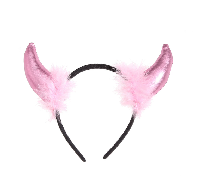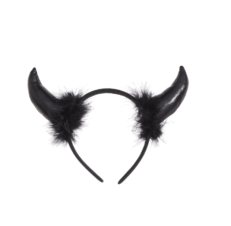 2025 Serre-tête Cornes de Diable en Plumes Couleur Unie Brillante pour Costume d'Halloween, Livraison Directe