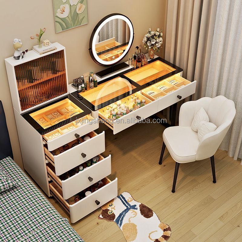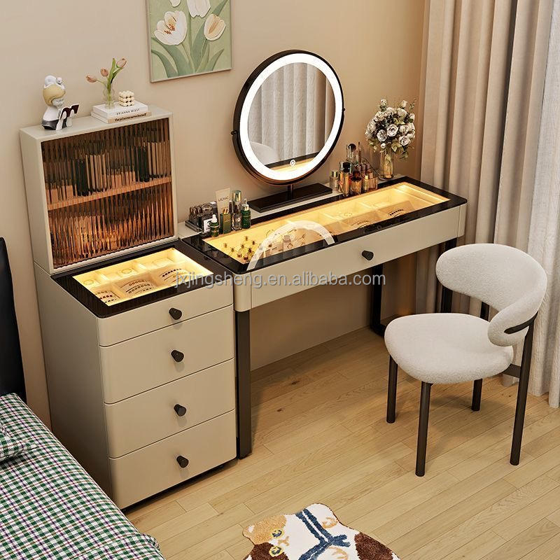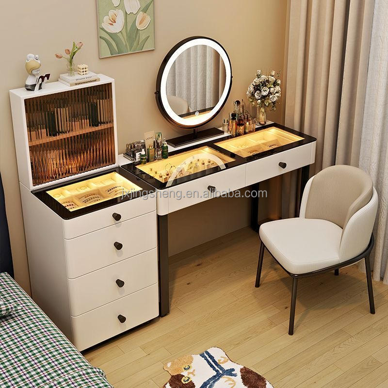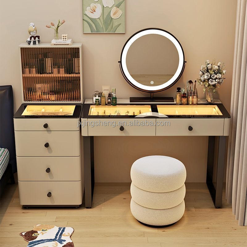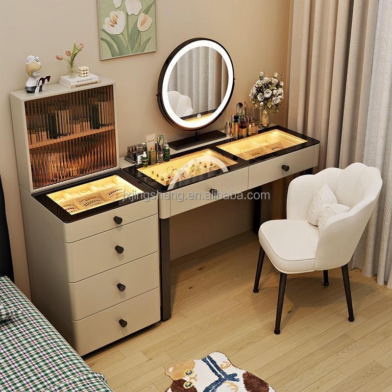 2025 crème style moderne simple en bois massif coiffeuse seau armoire stockage atmosphère panoramique lumière