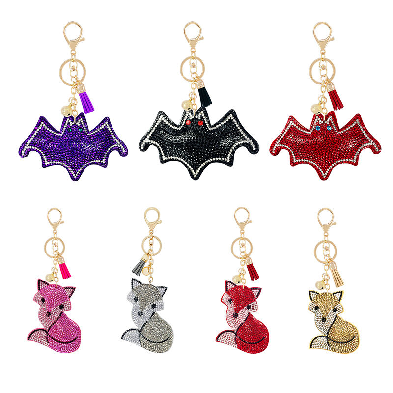 2025 créatif petit dessin animé mignon flanelle porte-clés doux hibou souris forme pendentif strass nouvel an idée cadeau en peluche porte-clés
