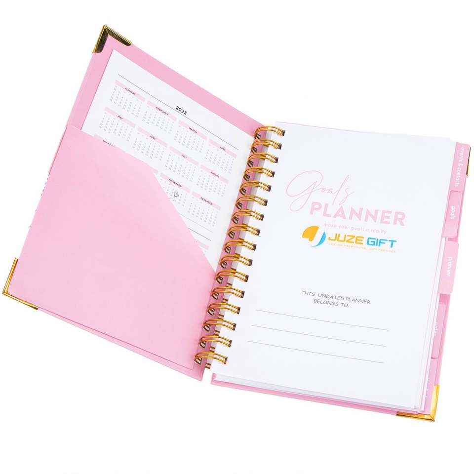 Carnet A5 personnalisé 2025, couverture rigide, non daté, reliure spirale, agenda bien-être, cadeau promotionnel, couverture en cuir, boîte cadeau personnalisable