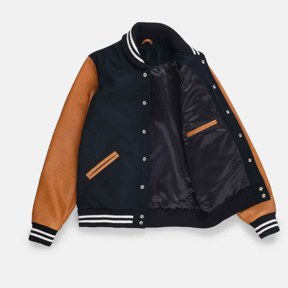 2025 Custom Chenille Embroidery Baseball Jacket Stand Collar Canvas Sleeves Wool Leather Original Customized Casual Wear Patches