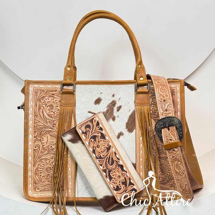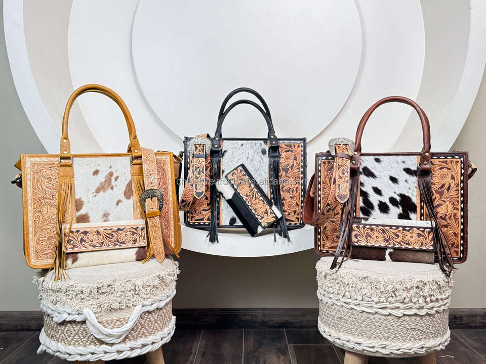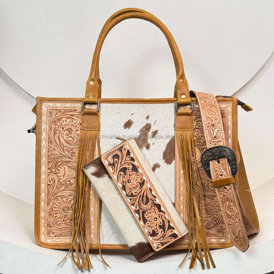 2025 sac fourre-tout à bandoulière en cuir de vachette usiné à la main de créateur personnalisé avec portefeuille en cuir usiné à la main 2 pièces en 1 ensemble pour femmes