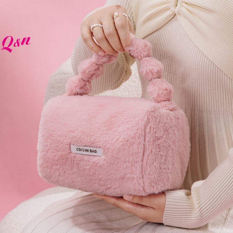 2025 personnalisé écologique grande fermeture éclair Portable velours en peluche gonflé moelleux flou maquillage cosmétique sac de rangement voyage femmes