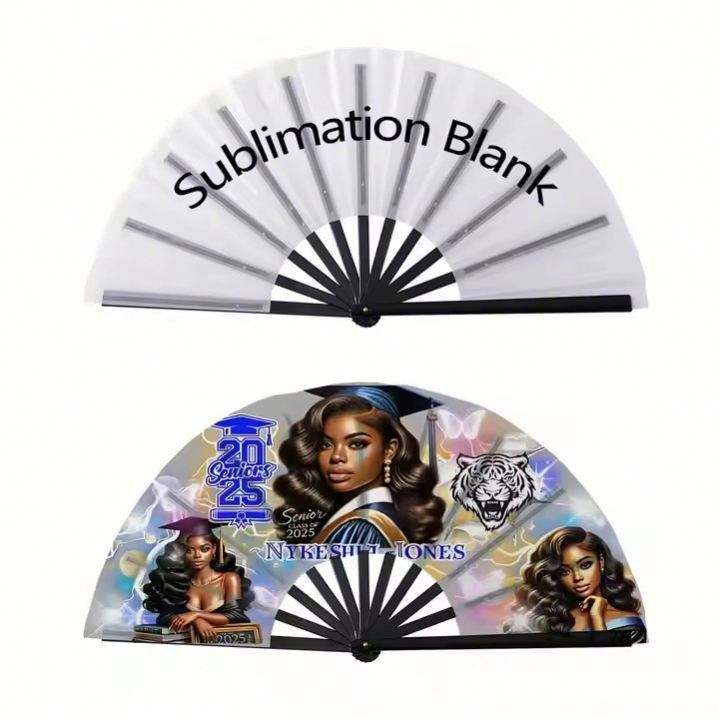 Éventails pliants personnalisés en tissu plastique écologique grand format 2025 avec logo peint, sac mascotte religieuse chinoise nouvelle collection