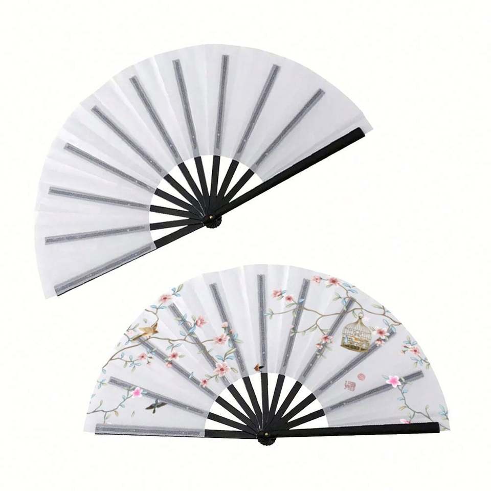 2025 Custom Eco-friendly Large Plastic Fabric Folding Hand Fans Personalized Painted Logo for Chinese New Year Plastic Crafts