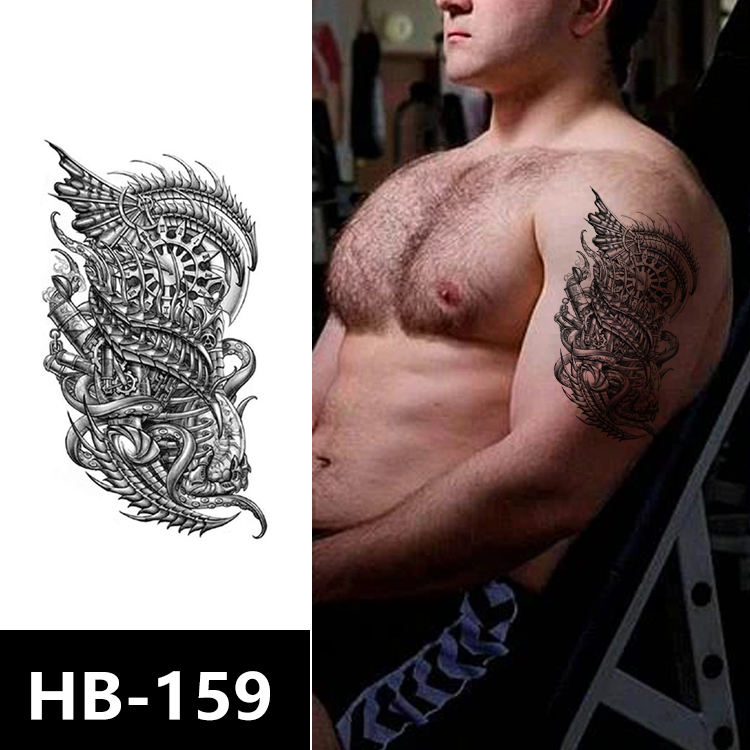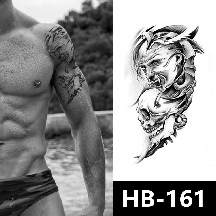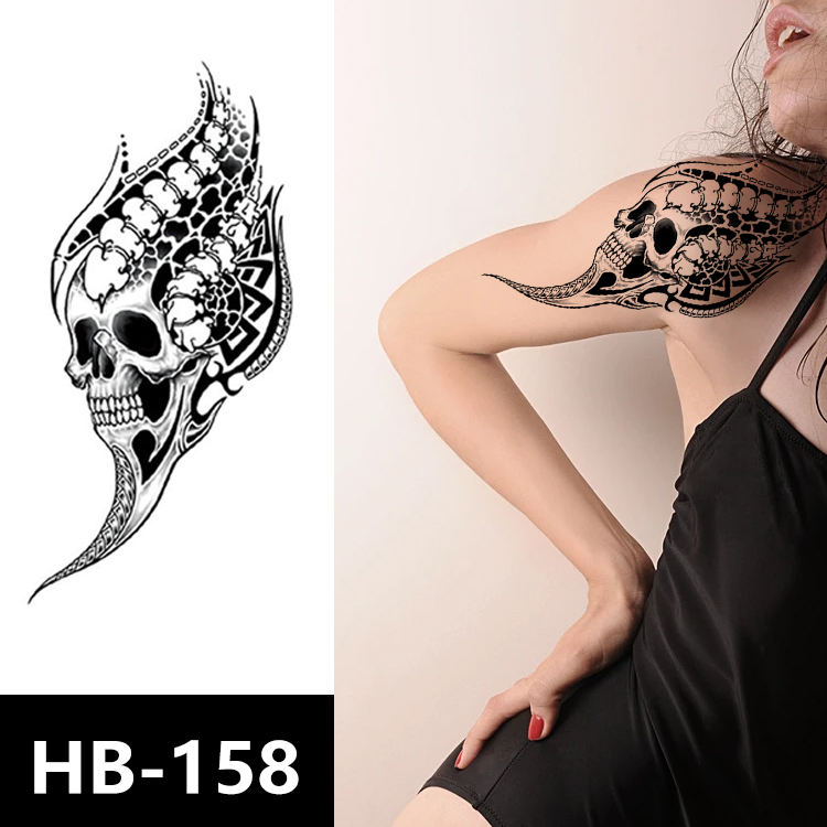 Pochoirs de tatouage personnalisés 2026 pour demi-bras, motif crâne, transfert à l'eau et autocollants de tatouage en papier imperméables pour l'art corporel