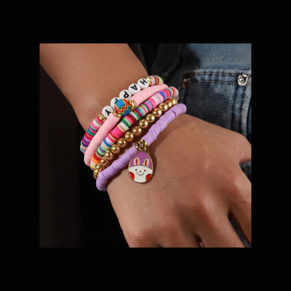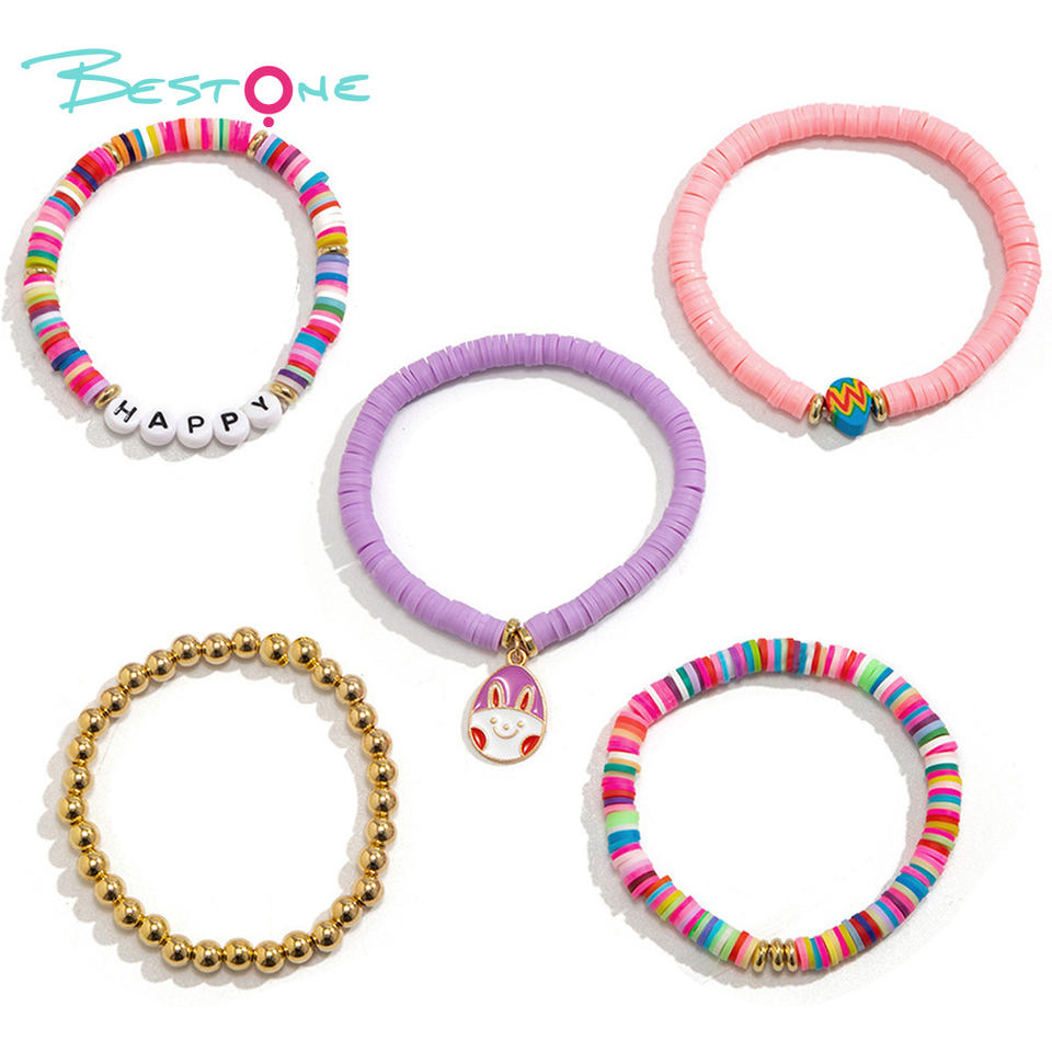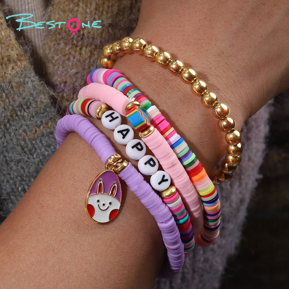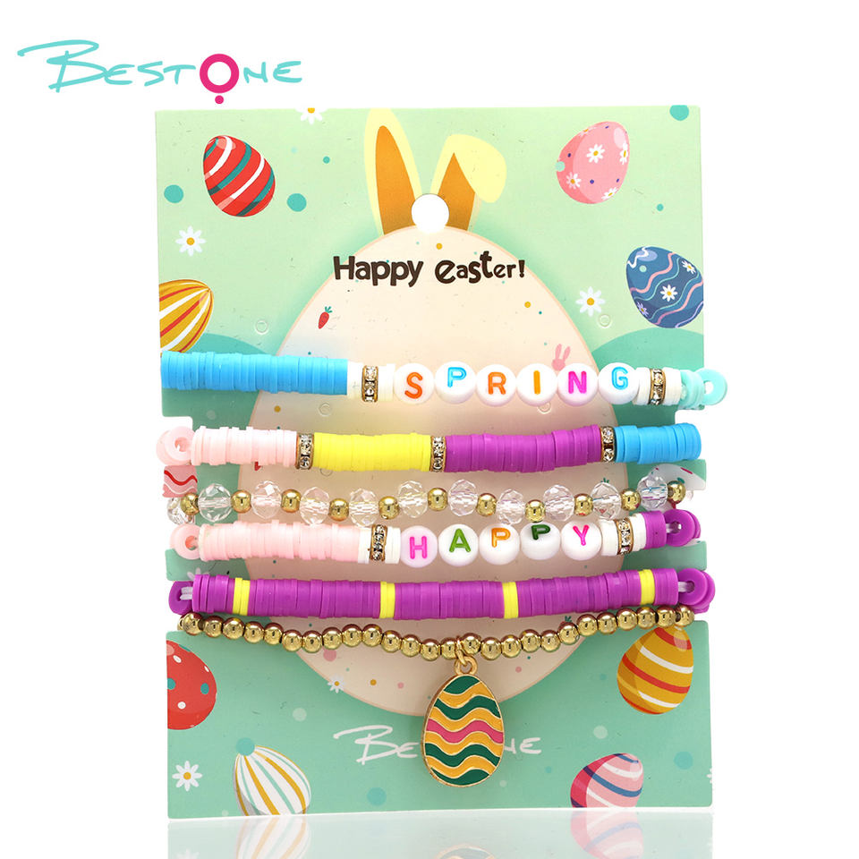 2025 bijoux personnalisés cadeau de Pâques fille Golg Bracelet perlé Bracelet en argile avec breloque oeufs