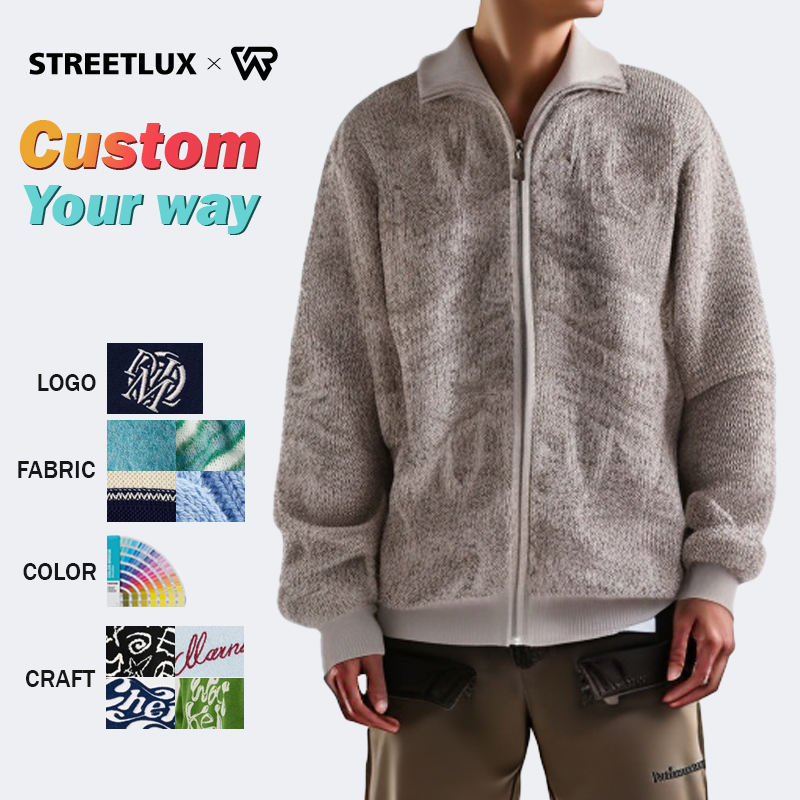 2025 LOGO personnalisé OEM & ODM 460 grammes pull en tricot à fermeture éclair pour hommesPull 100% tricoté