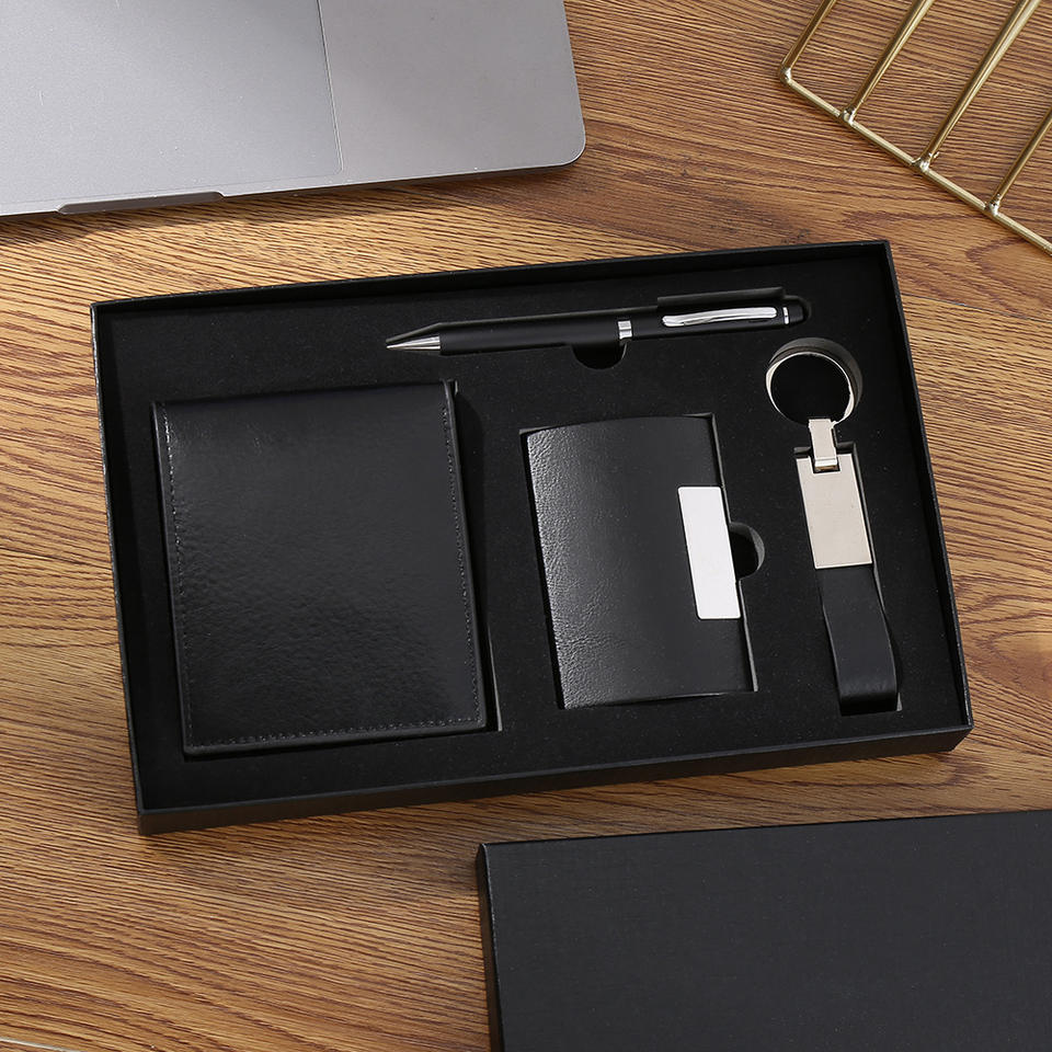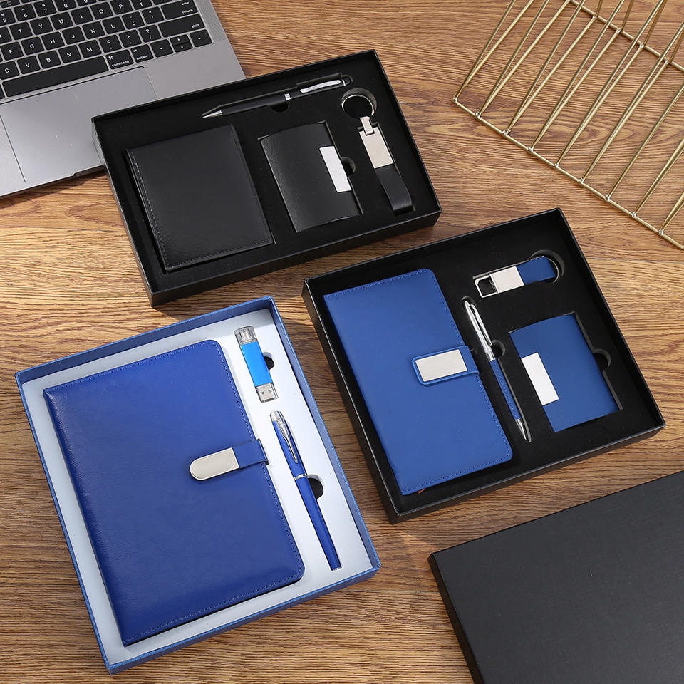 Ensemble cadeau d'affaires en cuir PU exquis avec logo personnalisé 2025, ensemble cadeau VIP pour clients d'entreprise, stylo, agenda, porte-clés, porte-cartes, sérigraphie