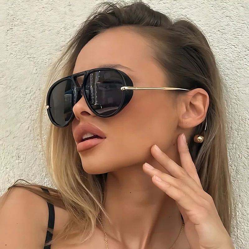 Lunettes de soleil pilote surdimensionnées rétro tendance 2025 avec logo personnalisé, protection UV400, style punk à double pont pour femme