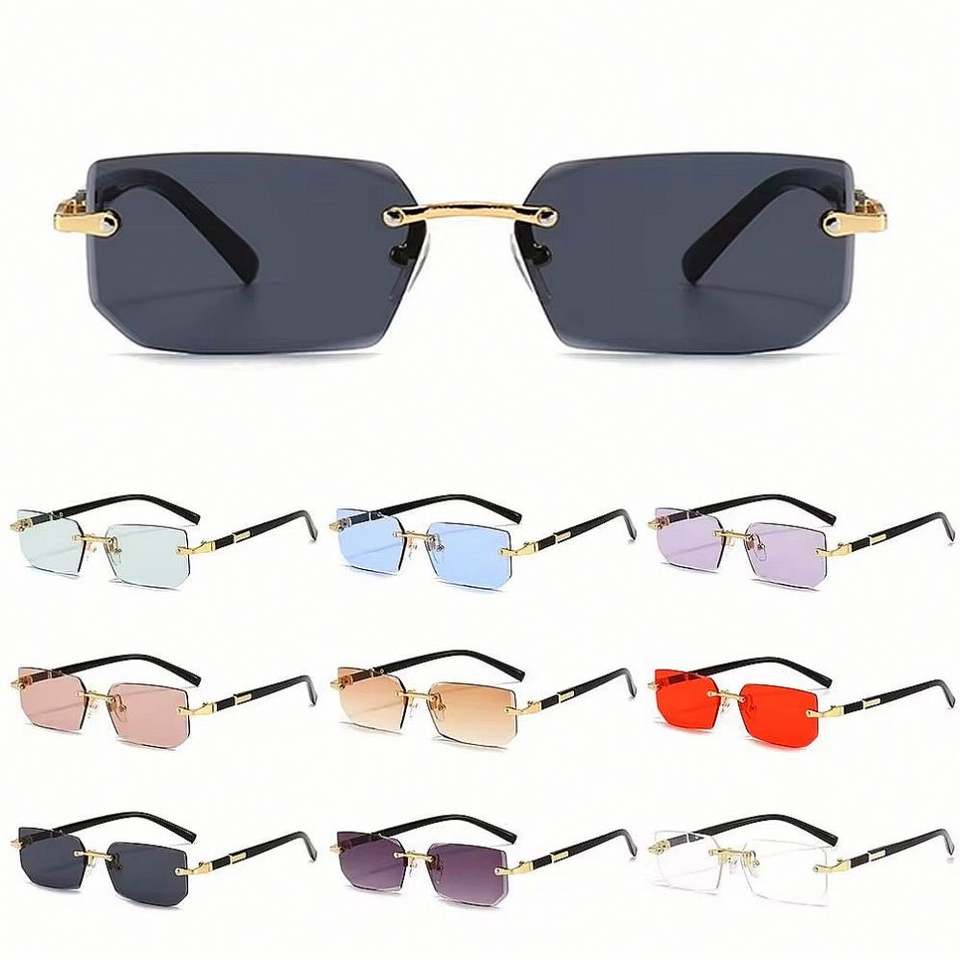 Lunettes de soleil tendance rétro rectangulaires à petite monture avec logo personnalisé 2025, UV400, dégradées, sans monture, carrées, pour hommes et femmes