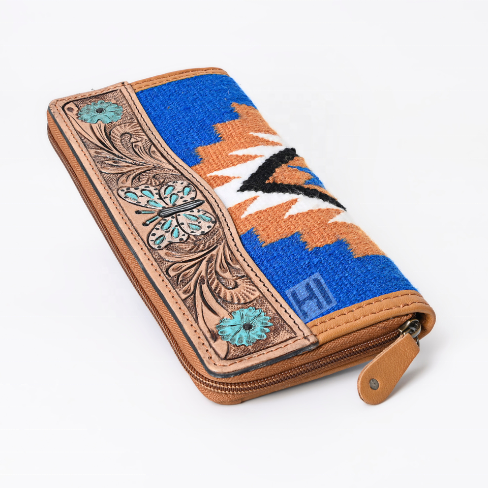 2025 sur mesure aztèque sculpture à la main conception peau de vache RFID usiné selle Vintage Western femmes Long portefeuille