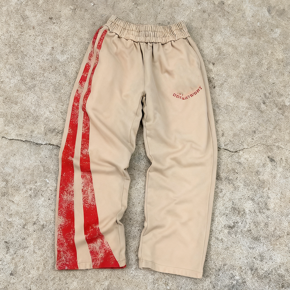 2025 personnalisé hommes coton fissure imprimé pantalons de survêtement poids lourd surdimensionné soleil délavé acide lavage jambe droite Baggy pantalons de survêtement
