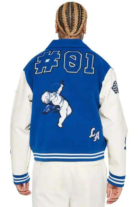 Veste universitaire d'hiver pour homme personnalisée 2025, blanc/bleu, Warriors, broderie du logo sur le devant, col montant, séchage rapide, respirante