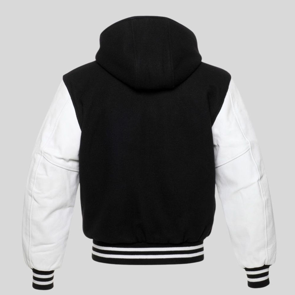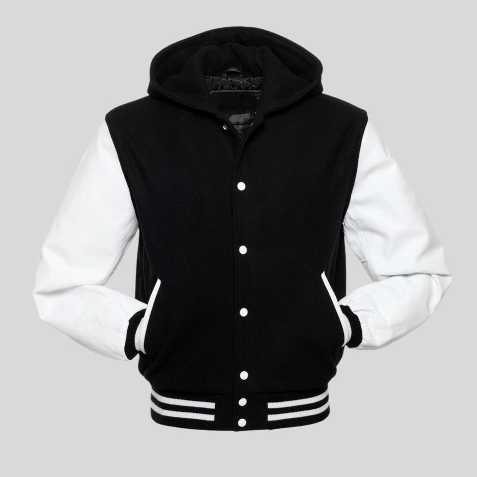 Veste universitaire pour homme personnalisée 2025, col montant, respirante, capuche, vêtements d'hiver, manches en cuir de vache véritable, nouvelle vente en gros