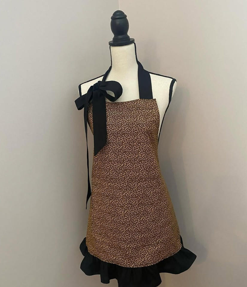 2025 personnalisé nouveau Design maison cuisine imprimé léopard tablier mode Sexy tablier à volants