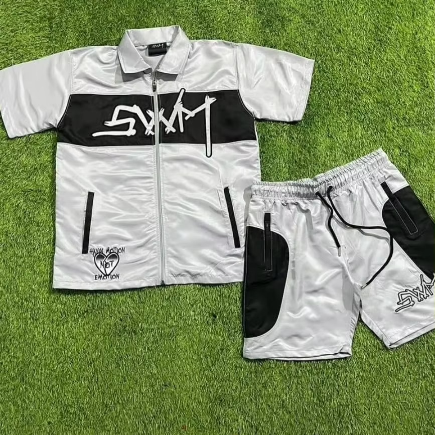 2025 personnalisé Nylon solide surdimensionné survêtement hommes tendance Double fermeture éclair à capuche Shorts ensemble numérique automne brodé survêtement