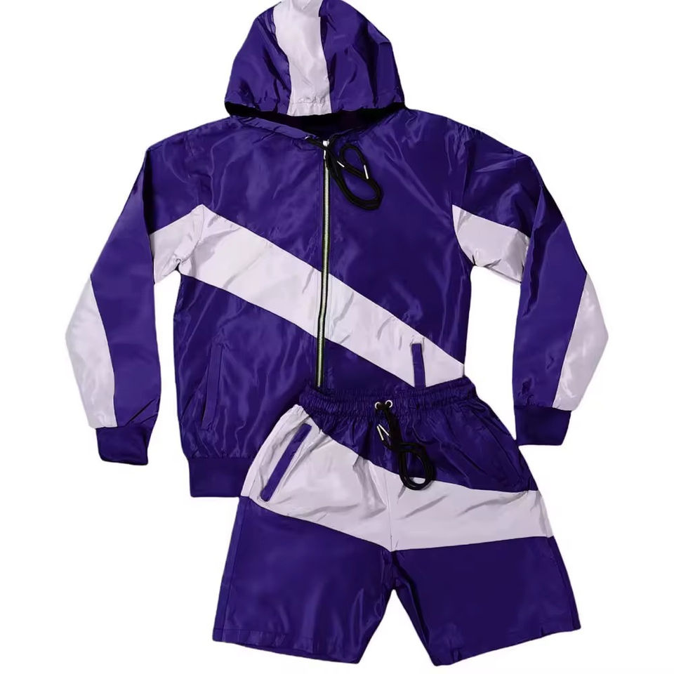2025 Custom Summer Nylon Polyester Two Piece Tracksuit Set Mens Windbreaker Jacket and Jogging Shorts Streetwear