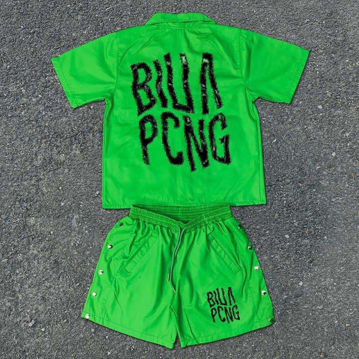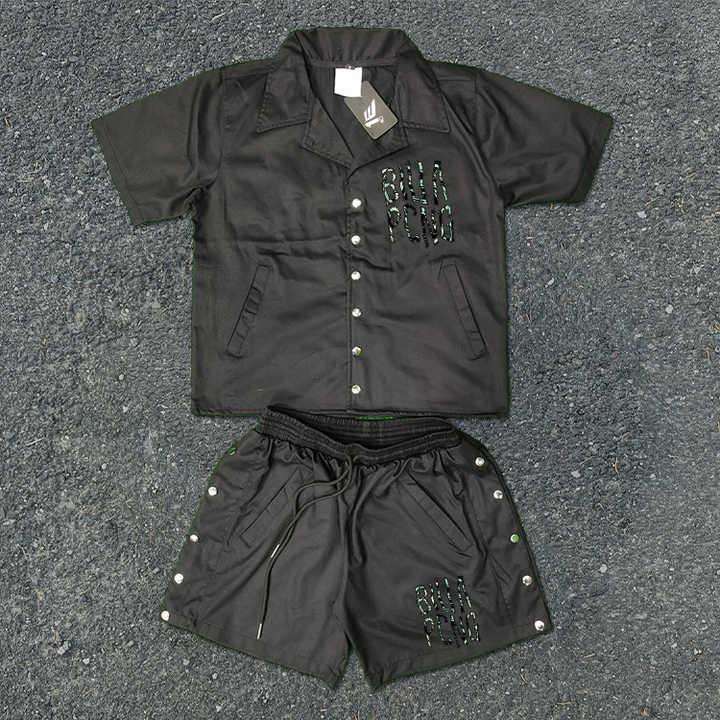 2025 ensembles de shorts et de vestes coupe-vent de style High Street deux pièces personnalisés survêtement à boutons en nylon
