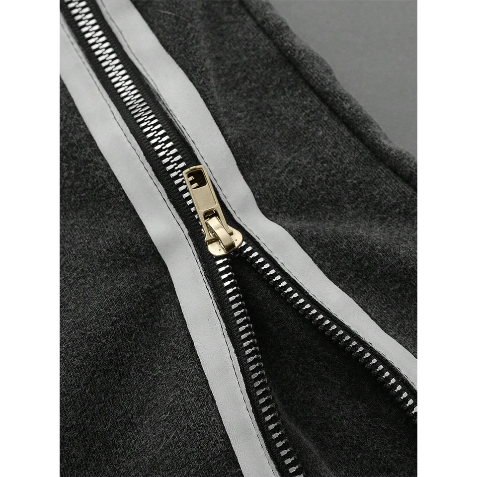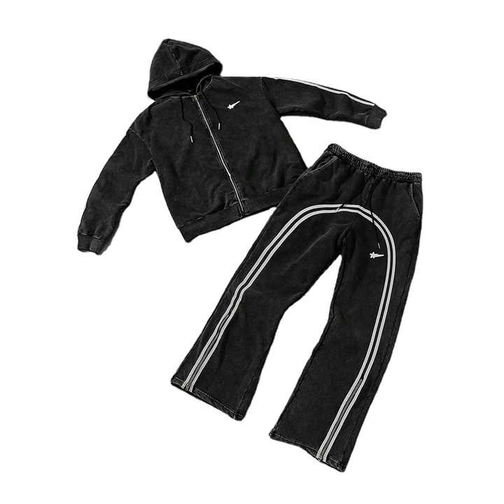 Ensemble de survêtement unisexe streetwear 2025 hiver, noir uni, effet délavé personnalisé, 100% coton, avec pantalon de jogging évasé et sweat à capuche zippé