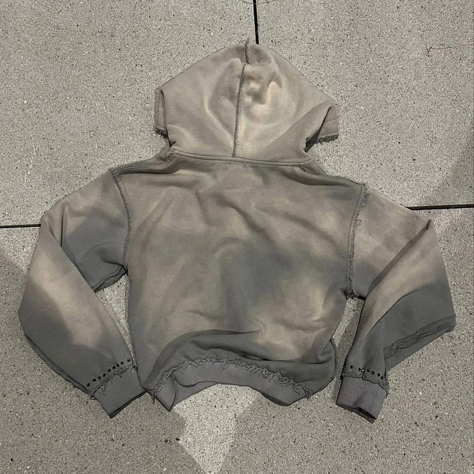 2025 Custom Zip-Up French Terry Hoodie With Distressed Embroidery Patches Streetwear From Manufacturers Solid Print Pattern