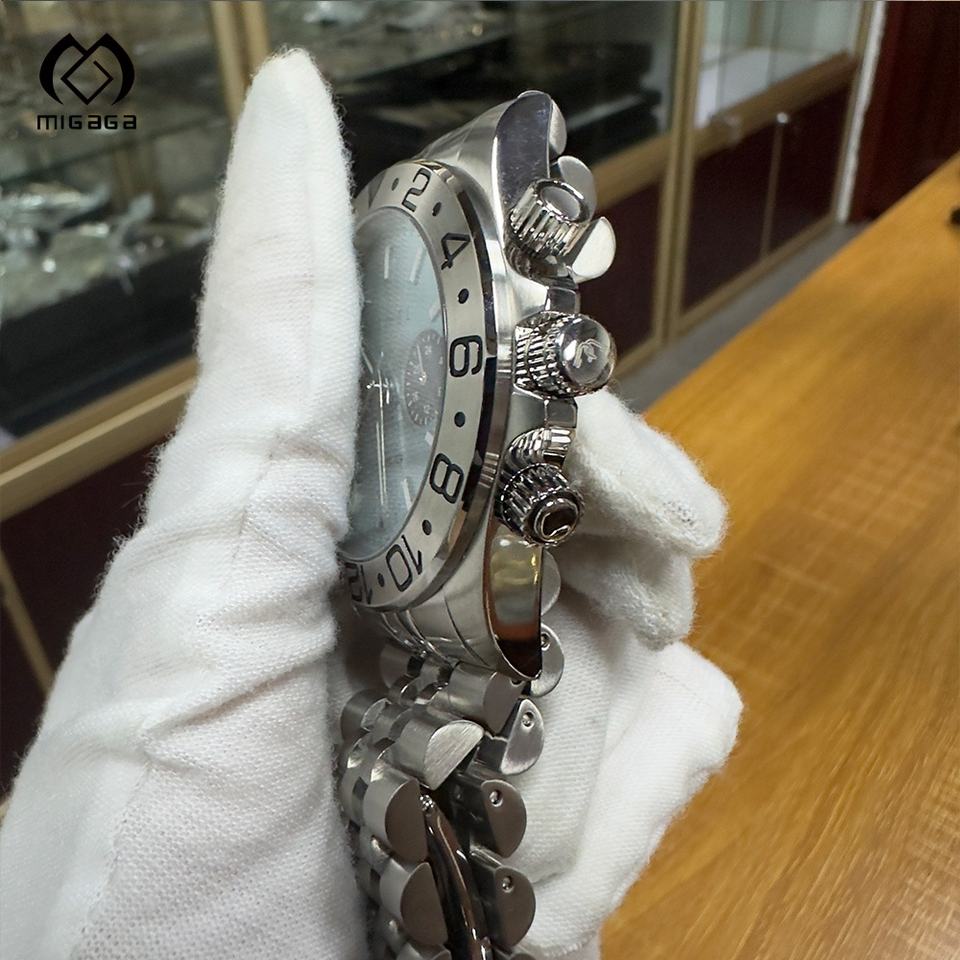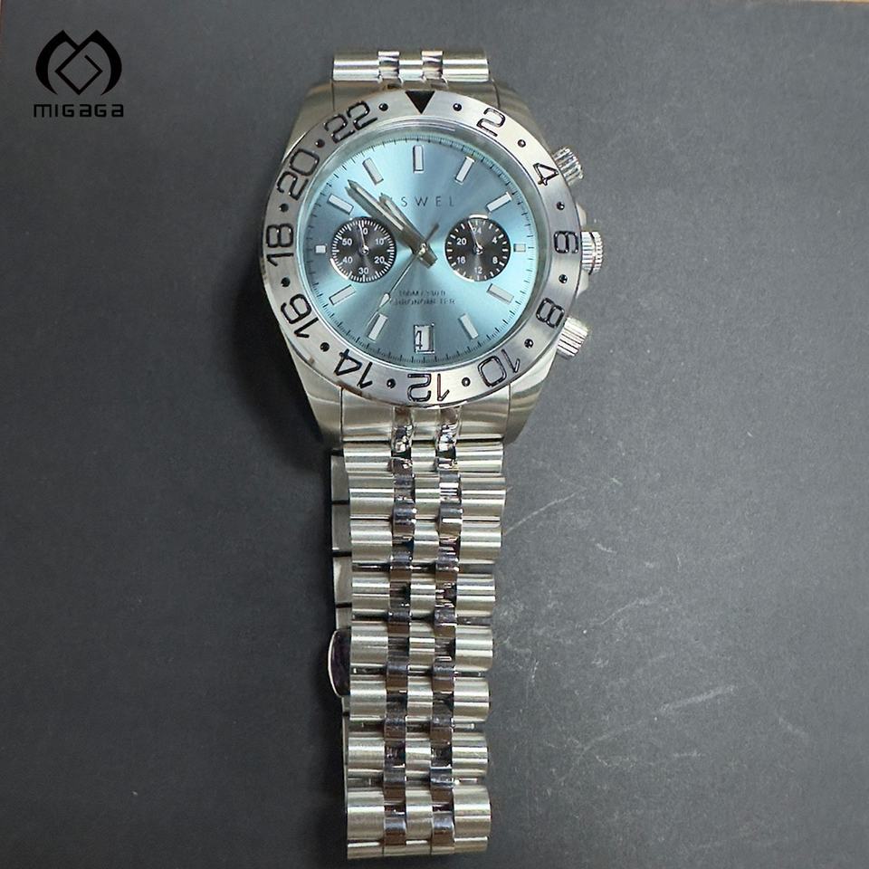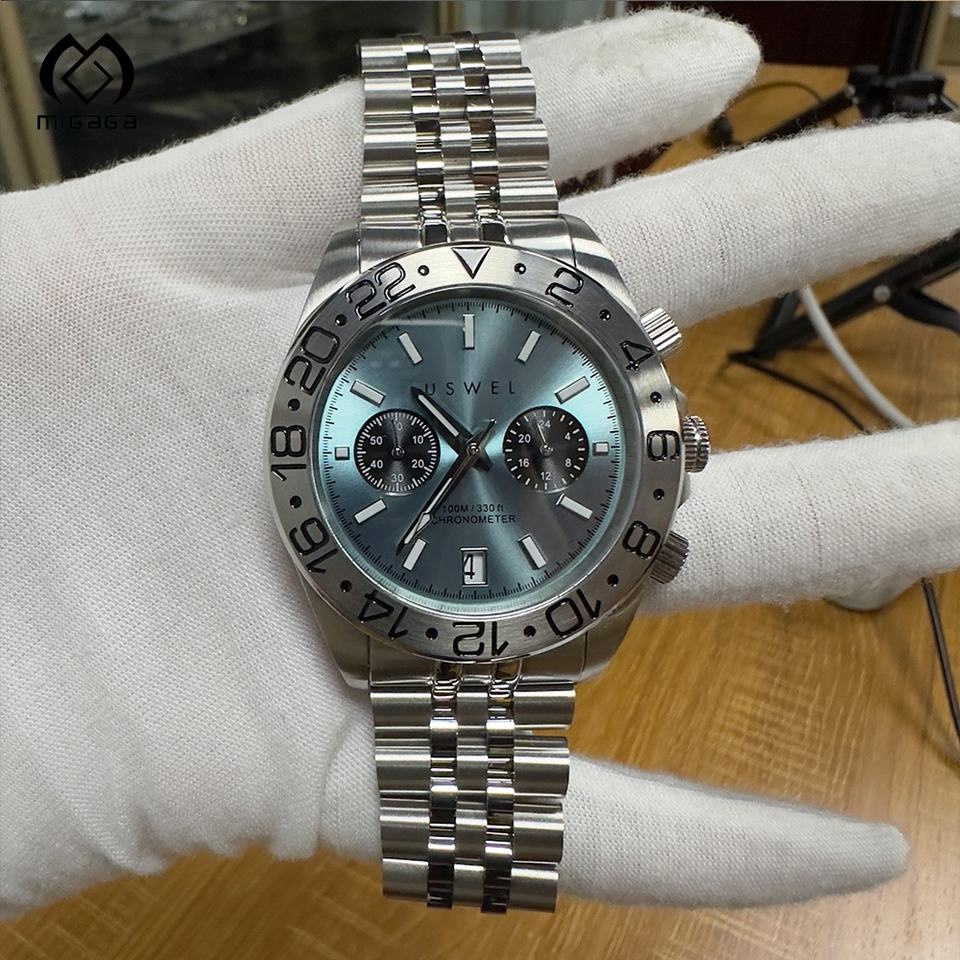 2025 montre-bracelet à Quartz pour hommes cadran bleu personnalisable haute qualité 100m étanche japon mouvement automatique fonction de Date lumineuse