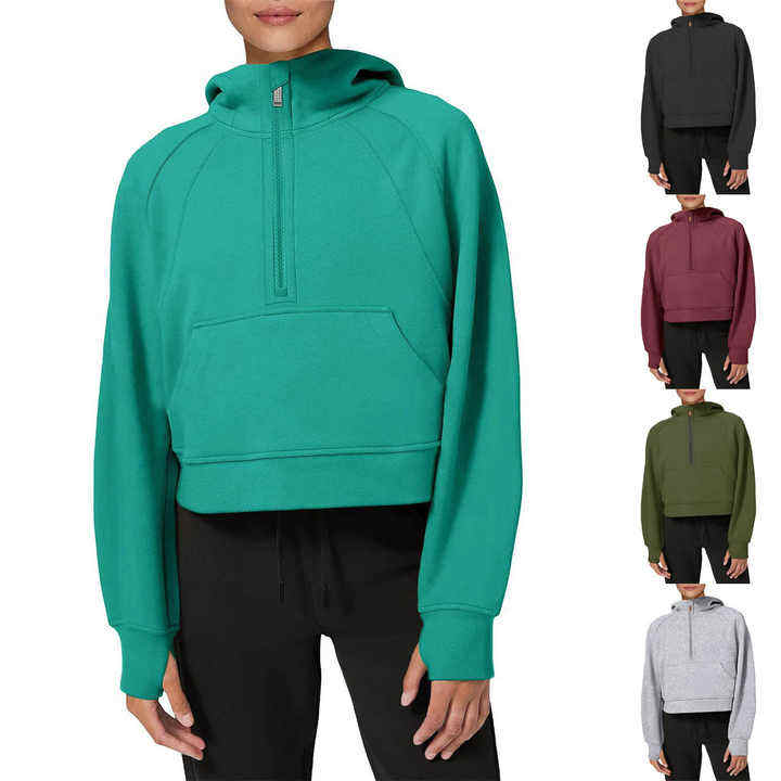 2025 Customized Cotton Fleece Half Zip Pullover 14 Zip Sweatshirt Blank Oversize Long Sleeve Sweatshirt Women Hoodie