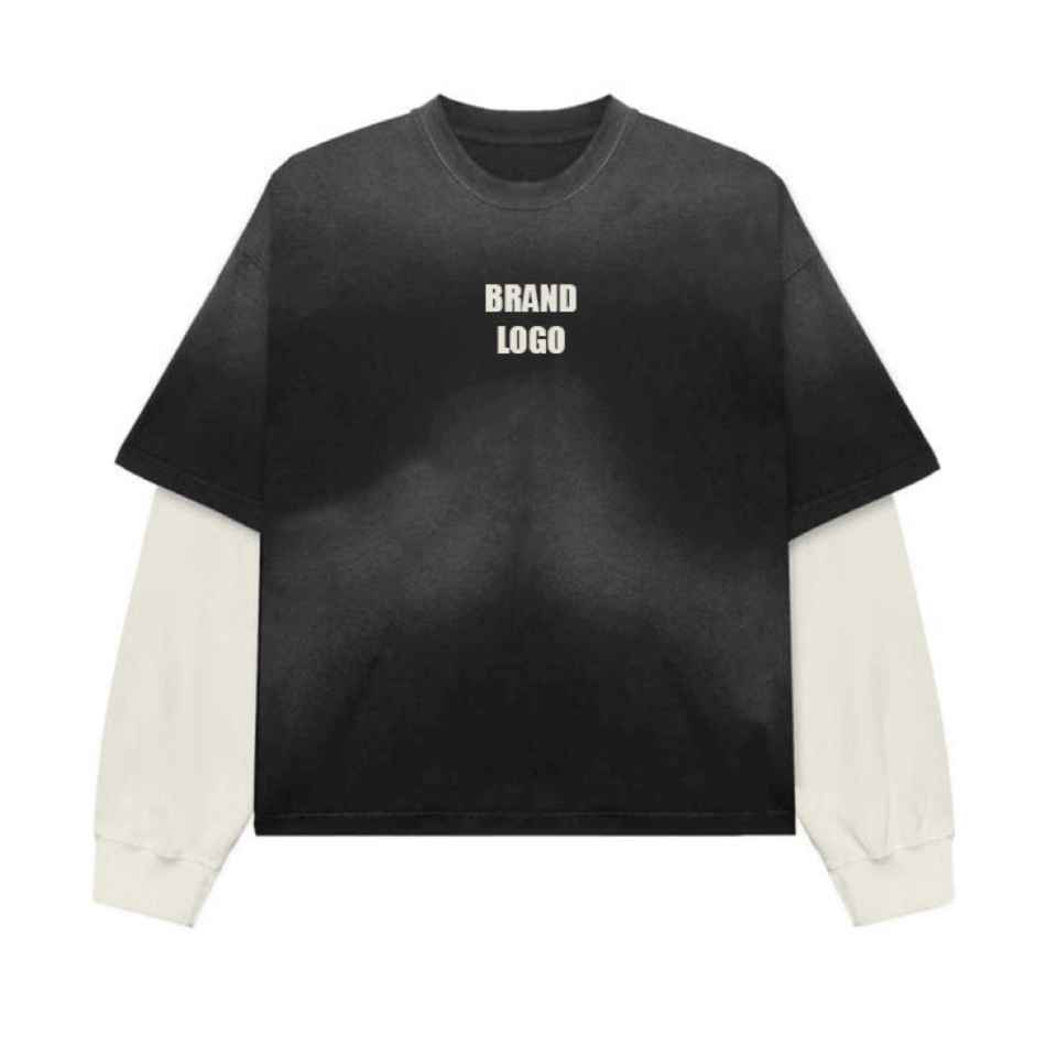 2025 personnalisé en détresse broderie soleil fondu Double couche col rond hommes Boxy recadrée surdimensionné 100% coton lourd T-Shirt