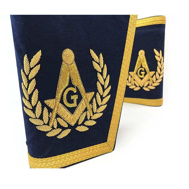 2025 personnalisé maçonnique bleu loge maître maçon officier tablier ensemble collier manchette gantlets maçonnique Regalia OEM entretenu