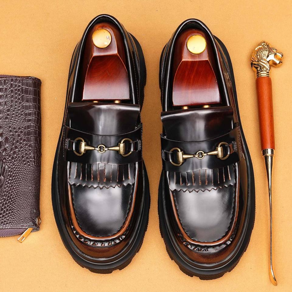 Chaussures habillées pour hommes en cuir véritable, style brogue, embossées, à bout carré, à enfiler, pour le travail et les occasions formelles, tendance 2025